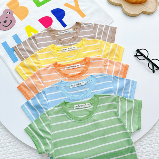 Bộ quần áo bé trai màu cam sọc trắng – Vải mềm, thoáng mát, dáng dễ thương